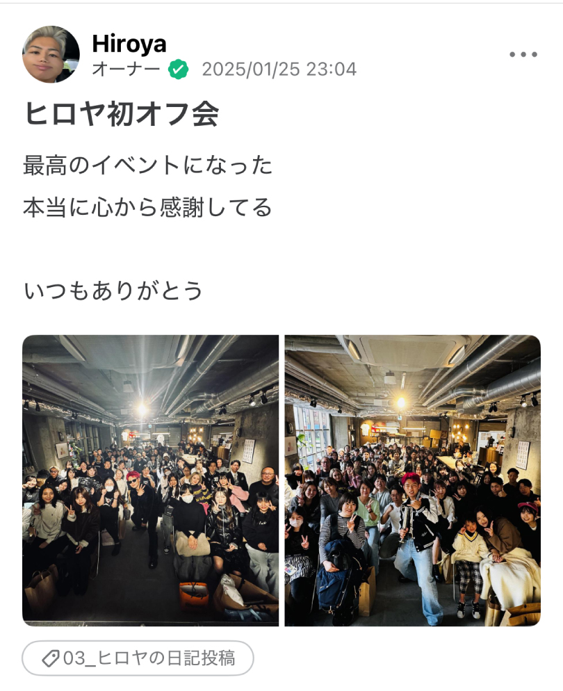 ヒロヤは年に数回、ファンのみんなとリアルに交流ができるオフ会を開催しています。