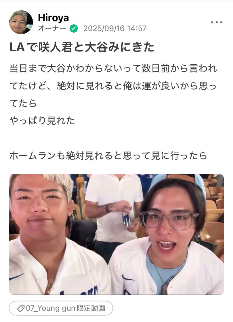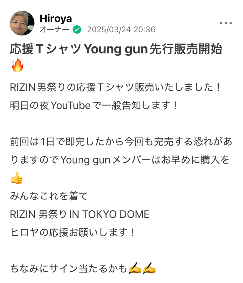 ヒロヤが唯一、ファンとつながる場として設けているコミュニティ「YOUNG GUN」